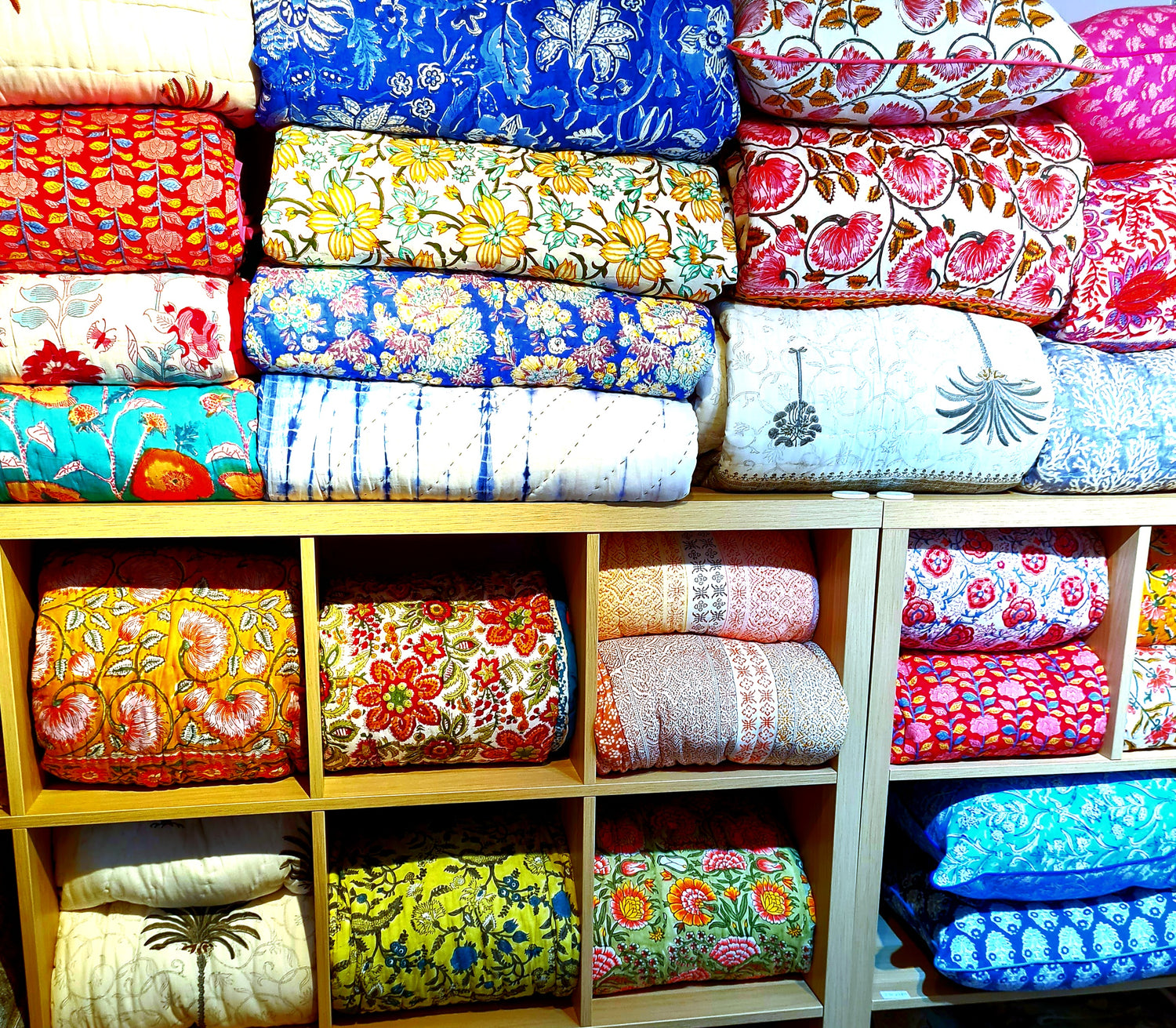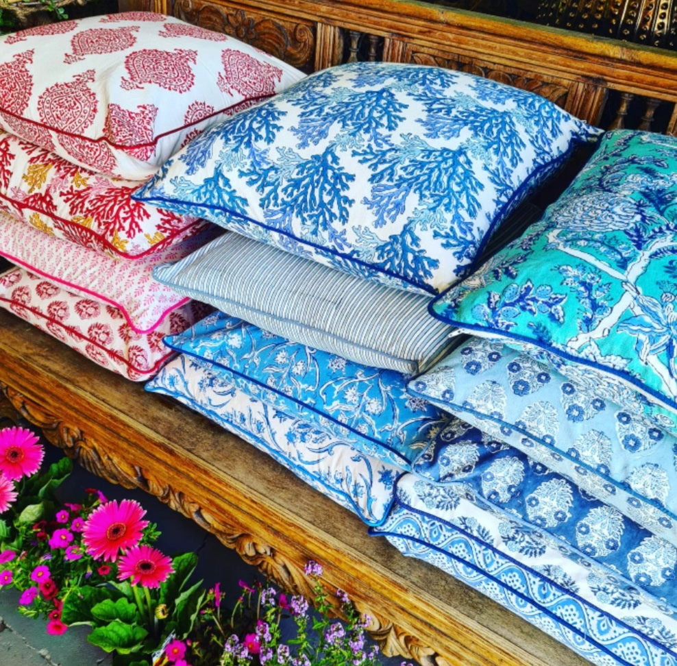 A colourful array of blockprinted cushion covers to add a pop of...